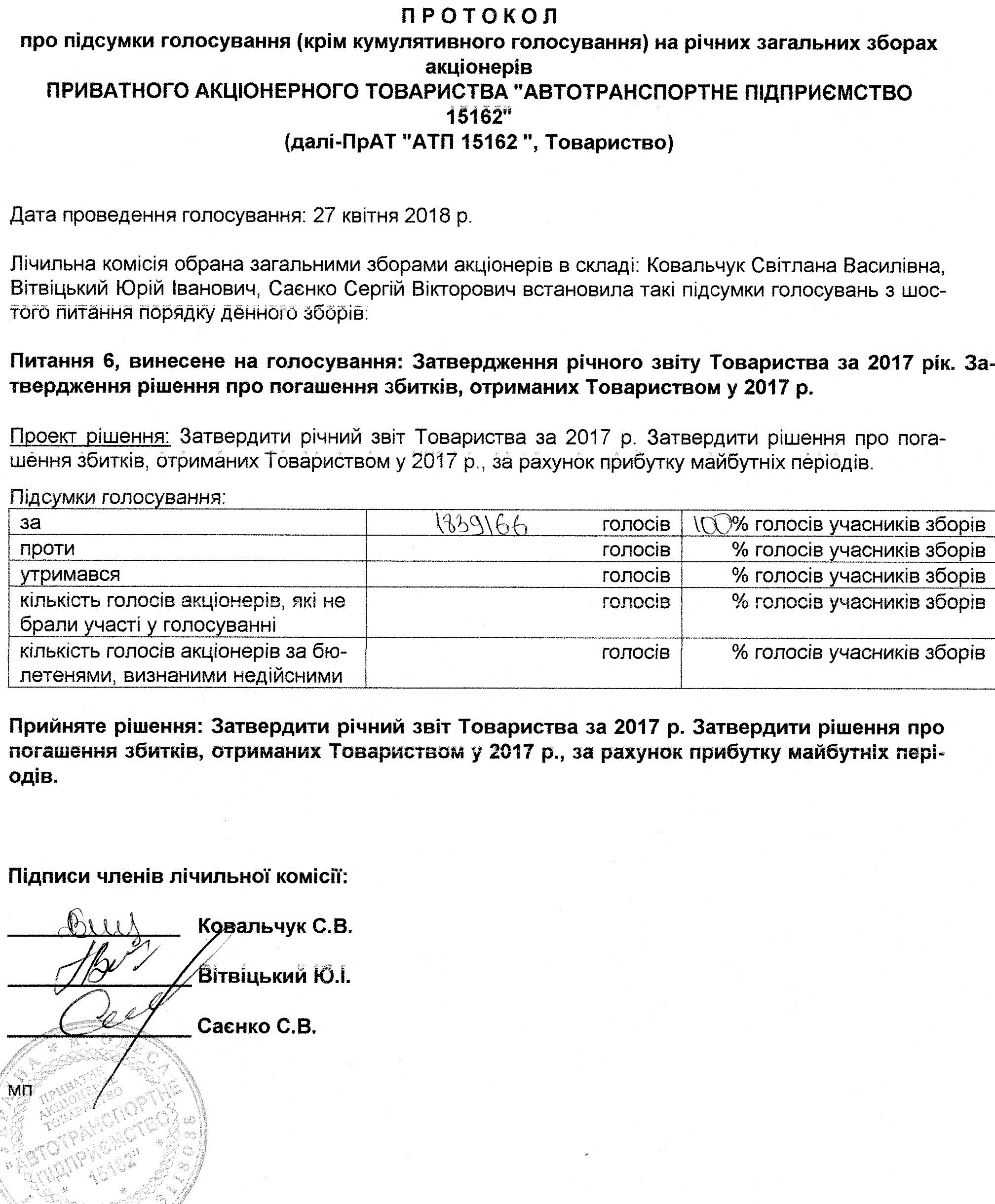 Протокол лічильної комісії №6 (розміщено 10.05.2018)