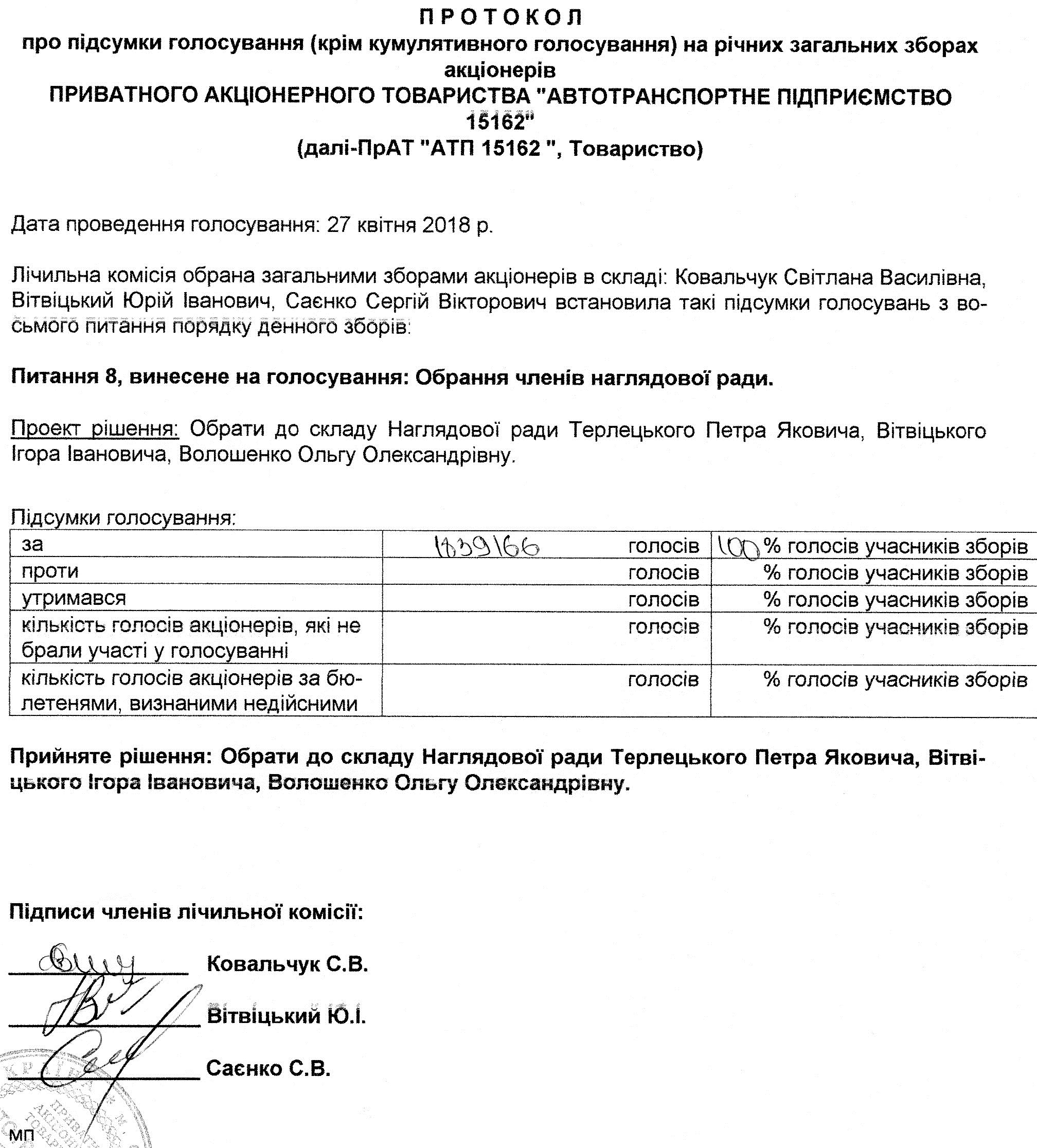 Протокол лічильної комісії №8 (розміщено 10.05.2018)