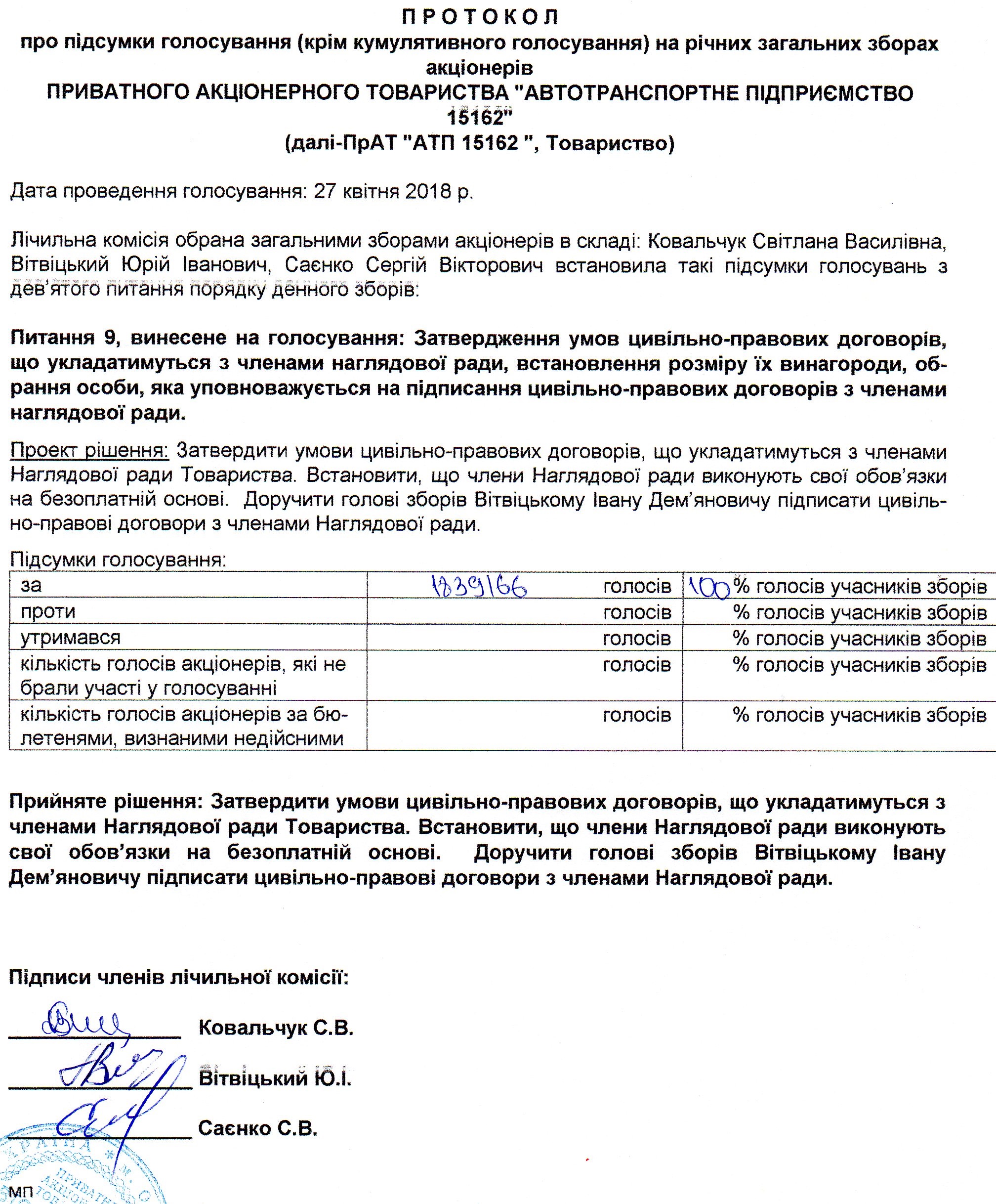 Протокол лічильної комісії №9 (розміщено 10.05.2018)