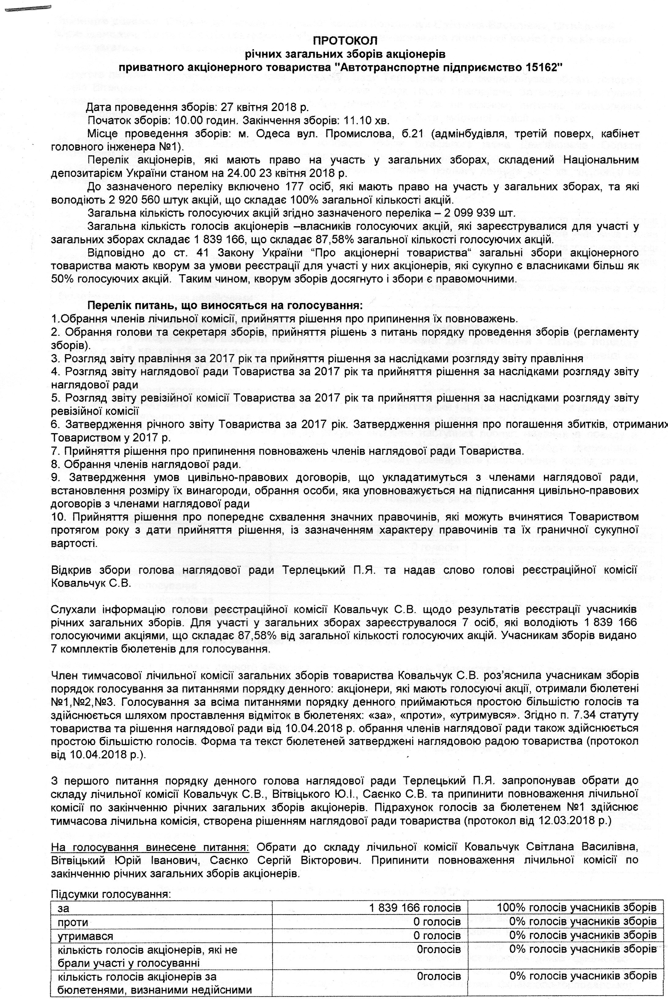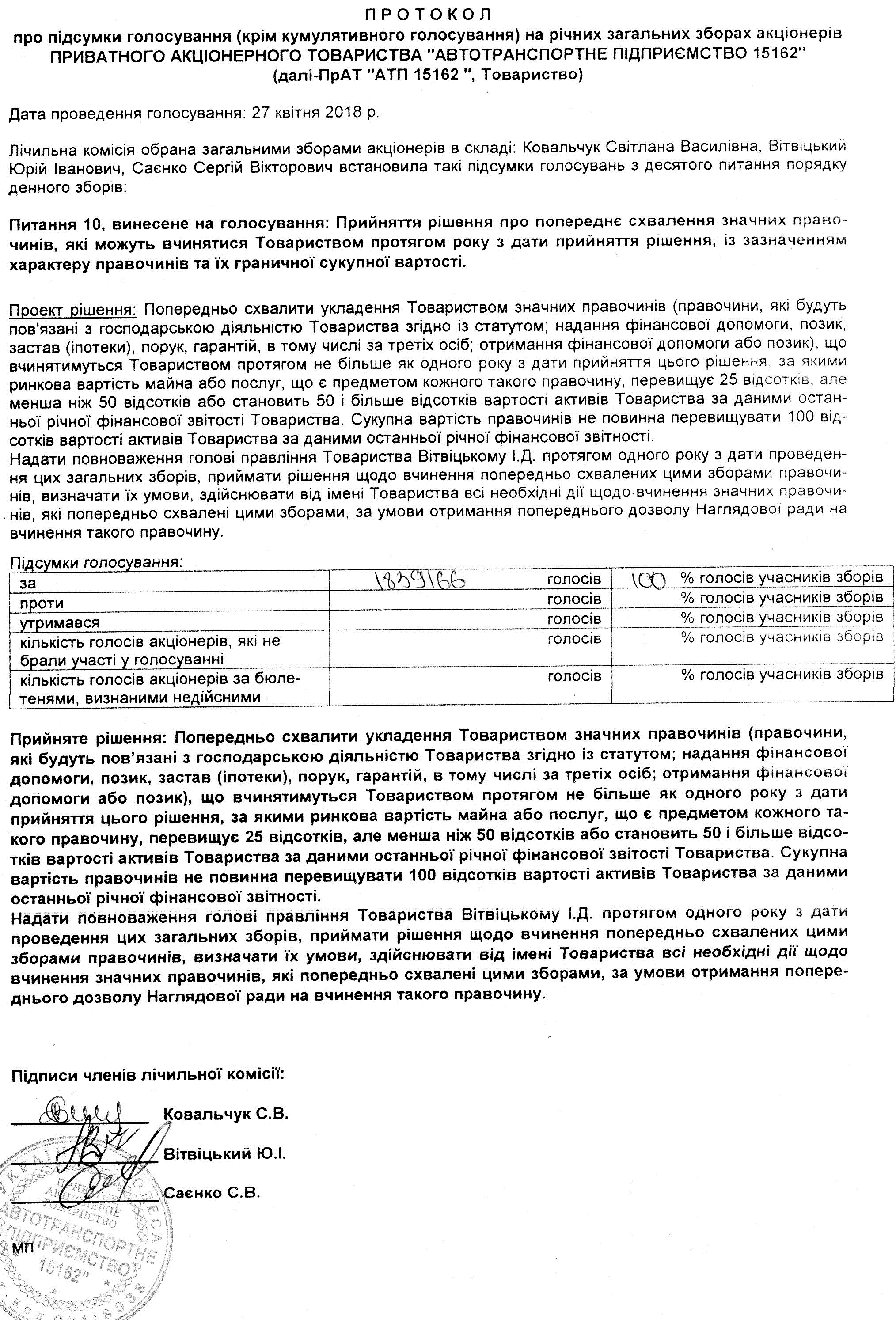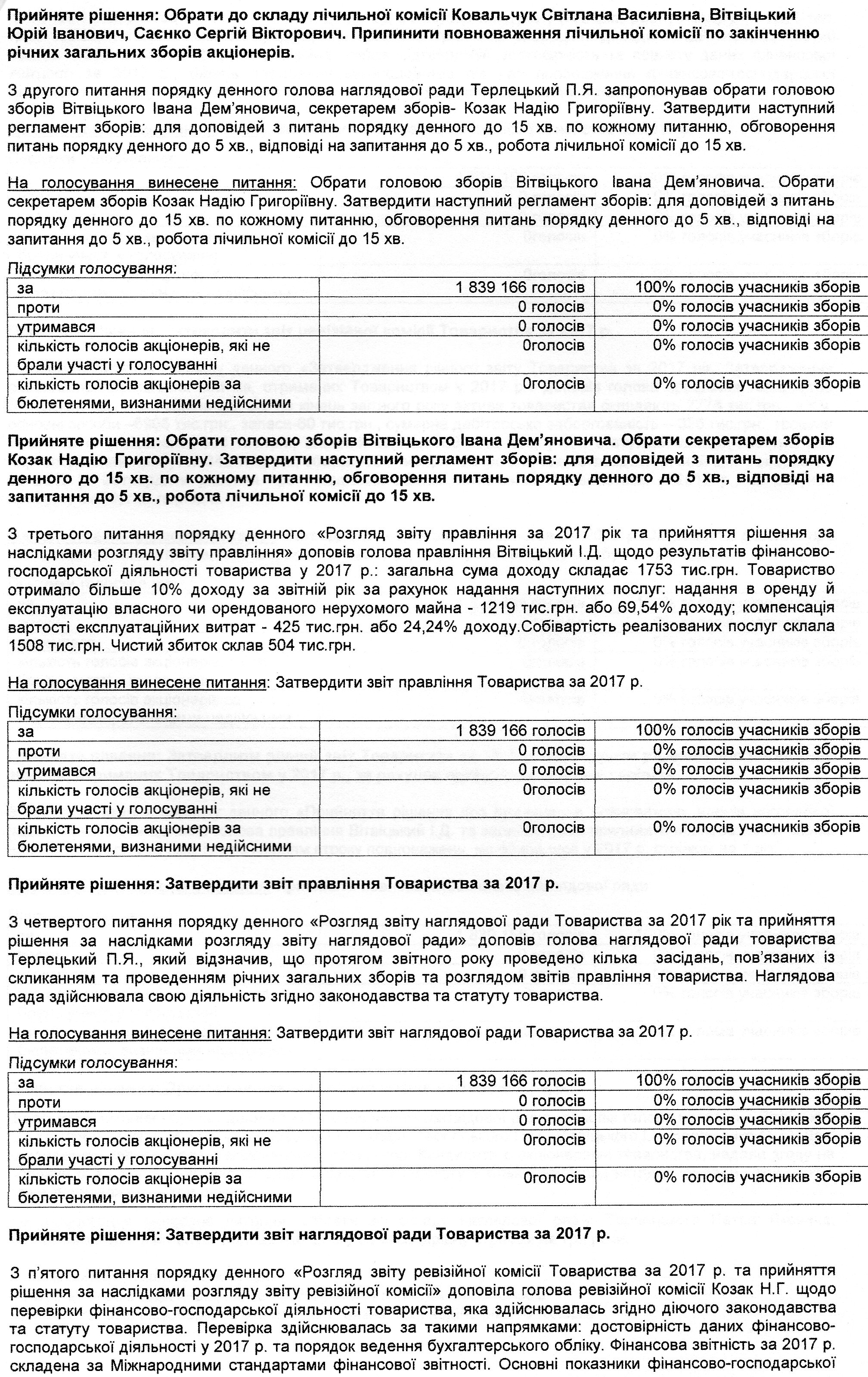 Протокол загальних зборів товариства 2018 р. (стр.5) (розміщено 10.05.2018)